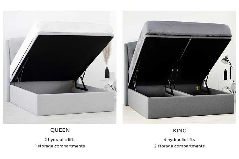 Inclusive: Storage bedframe, headboard, hydraulic system, platform base.