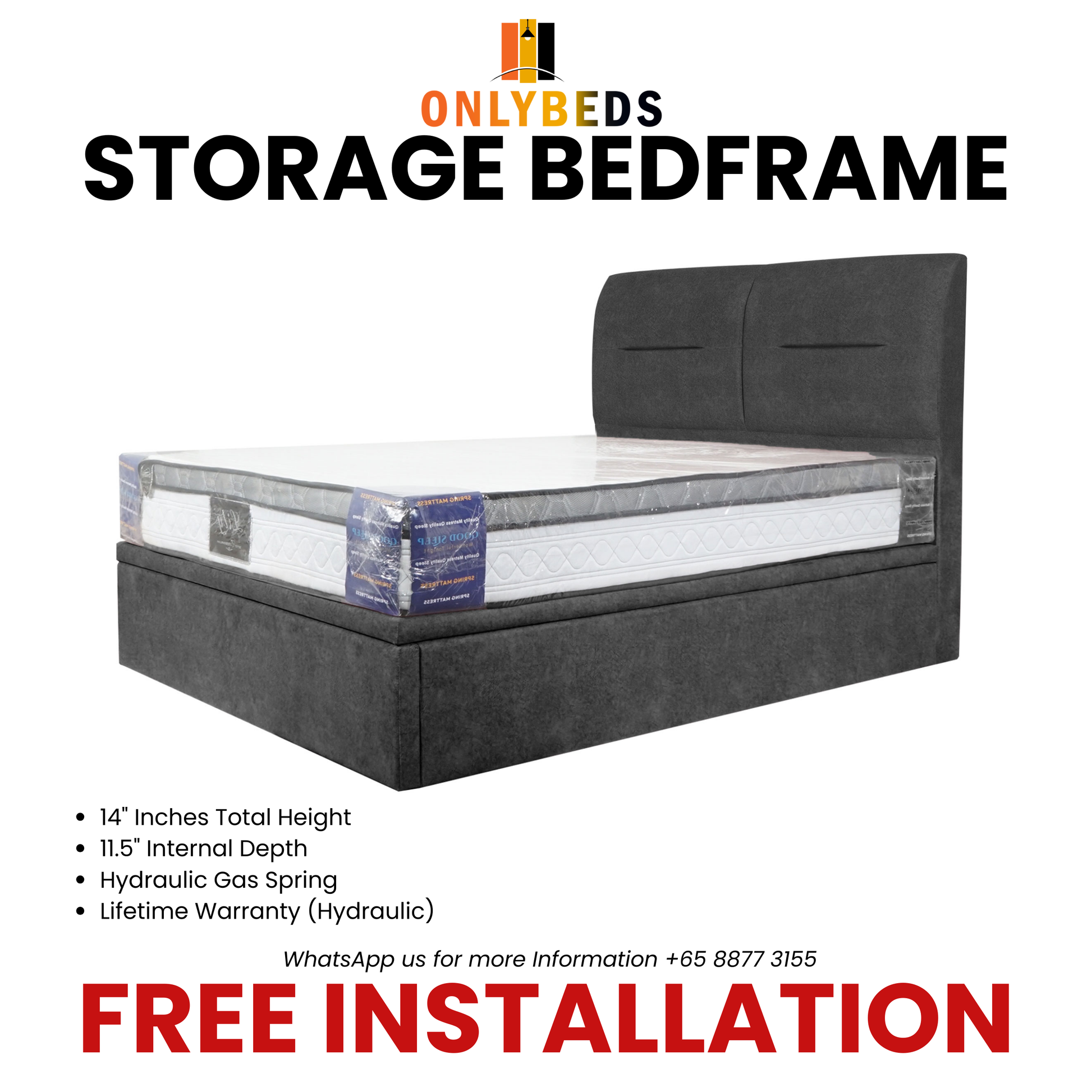 Inclusive: (storage bed, headboard, hydraulic, platform base)